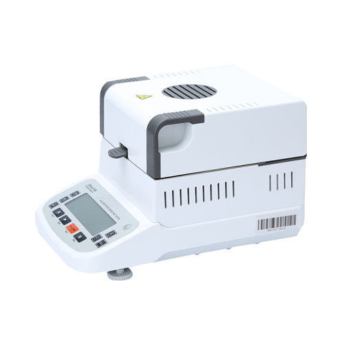 3、平衡后將樣品瓶移出,取出樣品,用電子天平稱取樣品置于樣品瓶內,然后在水分儀上點擊開始測量,同時將樣品瓶裝入加熱槽。