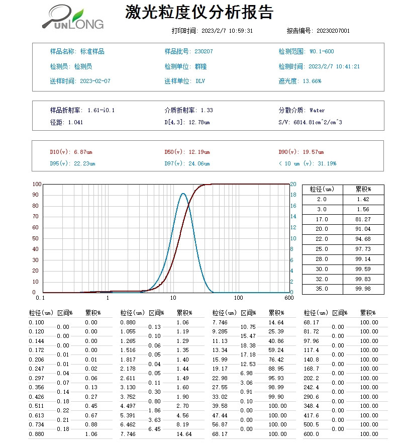 | 統計方式 | 體積分布和數量分布,以滿足不同行業對于粒度分布的不同統計方式 | |
