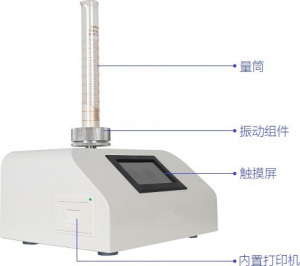 將定量的粉末置于量筒中,在保持顆粒原始形態下,通過振動裝置均勻往復的上下直線運動,使顆粒間隙趨于一極限值,直到粉末的體積不再減小為止。粉末的質量除以振實后的體積,得到的就是樣品的振實密度。
