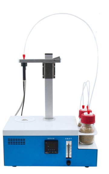 - 操作方便,用戶只需要設置合適的溫度,合適的流量,把樣品放入事先準備好的樣品瓶,放入加熱器,然后把傳輸針扎入樣品瓶的硅膠墊,在儀器上點開始測量即可。