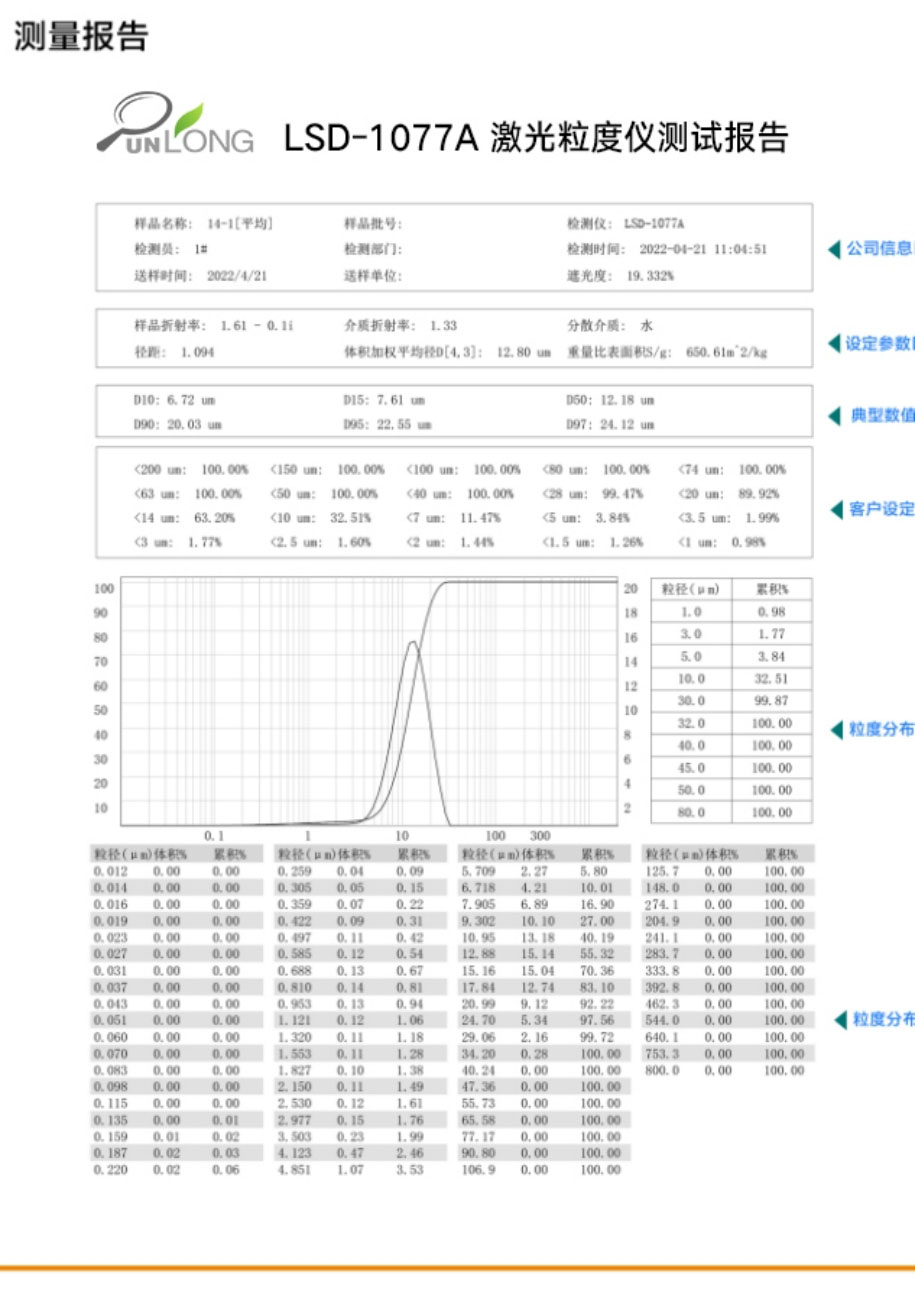 | 自行DIY | 用戶自定義要顯示的數據,根據粒徑求百分比、根據百分比求粒徑或根據 | |